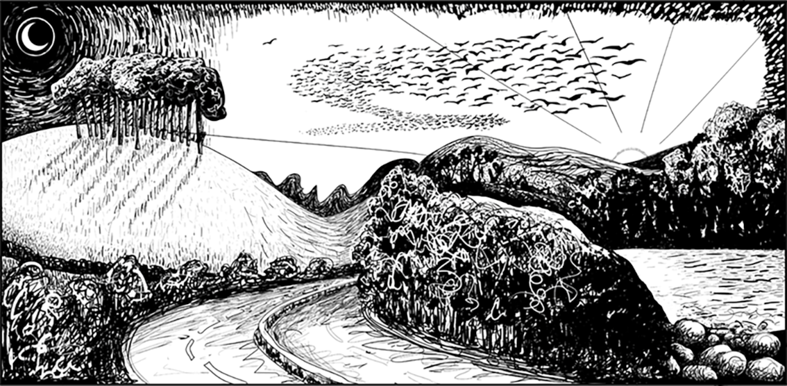 Browse the drawings and artworks and immerse yourself in the archive of images and clips which can be found under the Shoebox Files tab. Those who wish to spend time with the 'Common Treasury' may find humour alongside grave concerns and, perhaps recognition between the inky, papery folds.