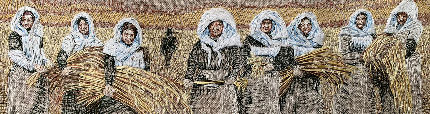 With stitch, paint, print and song, Kat archives the interface of tradition and modernity in everyday life. Kat’s practice begins with the serendipitous collecting of news cuttings, photographs, prints and drawings. The collection and archiving of seemingly random items in her shoebox files is fuelled by Kat’s engagement with tradition, spectacle, nostalgia and her fascination with the ways the ephemeral and eternal intermingle. Subjectively cataloguing both the familiar and idiosyncratic Kat mines her collection to create new stitchwork pieces, paintings, songs and illustrations under the title ‘A Common Treasury’.